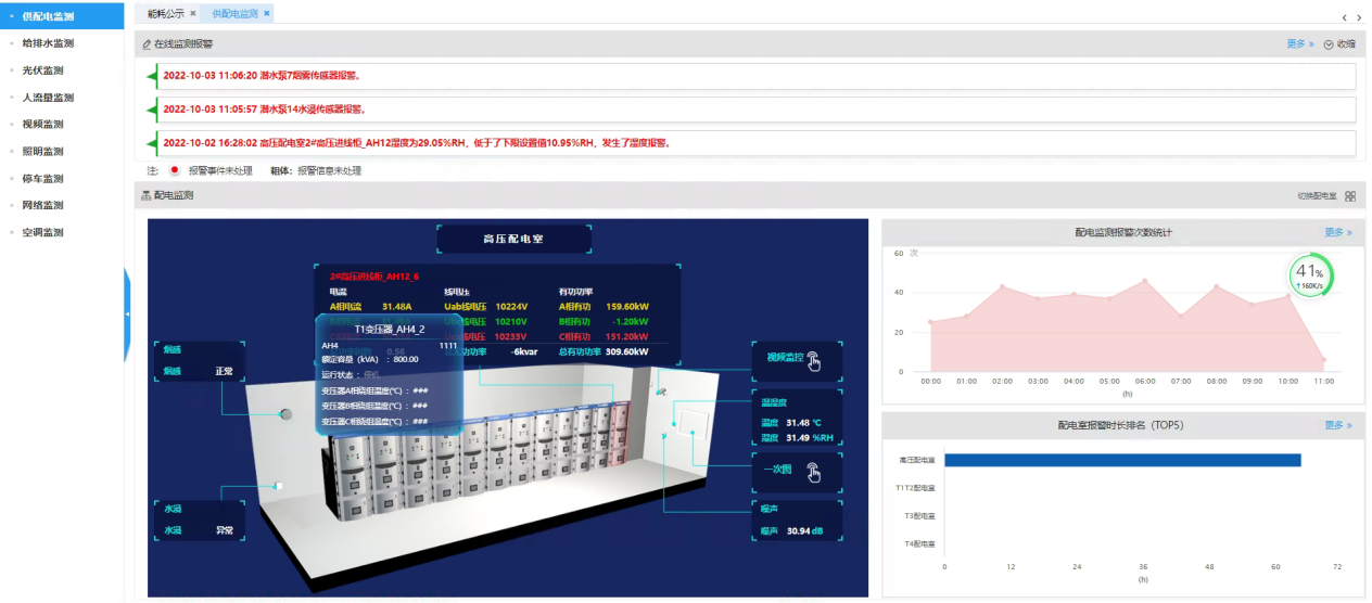 襄陽科技館WBEAS建筑節能系統能源監測種類為電力、水,監測點共計259個,其中電力監測點232個,水監測點26個,第三方系統接入有人流量監測、停車管理系統、視頻監控系統、門禁管理系統四個系統,涵蓋科技館四個樓層,25個展示區域。項目主要建設內容如下: