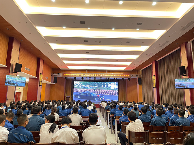 9月3日上午,萬洲電氣一樓多功能廳氣氛莊重而熱烈,萬洲集團(tuán)400余名在家員工齊聚一堂,集中觀看中國(guó)人民抗日戰(zhàn)爭(zhēng)暨世界反法西斯戰(zhàn)爭(zhēng)勝利80周年現(xiàn)場(chǎng)直播。