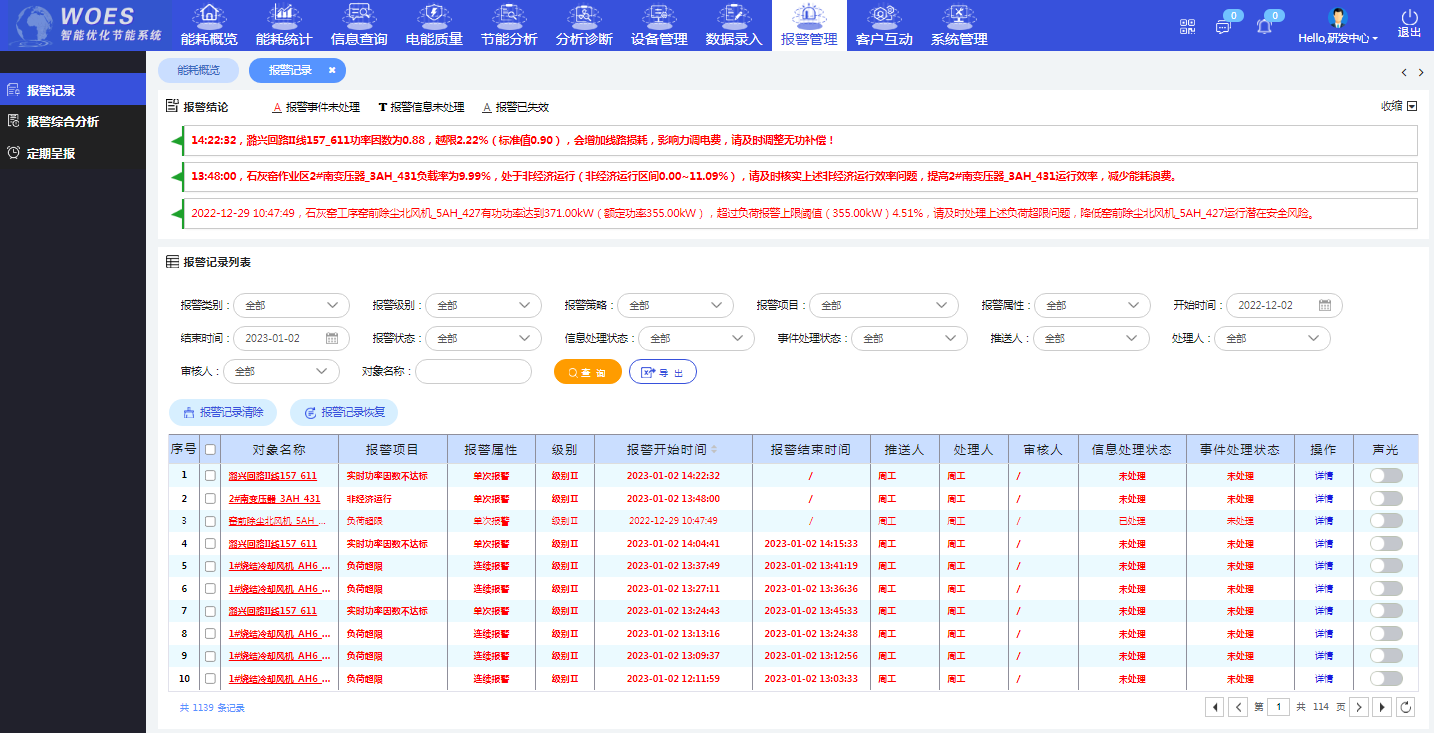 4、通過經(jīng)濟(jì)運(yùn)行分析模塊對全廠變壓器與電機(jī)進(jìn)行了監(jiān)測,對不經(jīng)濟(jì)運(yùn)行的電機(jī)和變壓器給出報警提示相關(guān)人員處理,通過對近半年的數(shù)據(jù)進(jìn)行統(tǒng)計分析,不經(jīng)濟(jì)運(yùn)行現(xiàn)象已較半年前明顯下降。