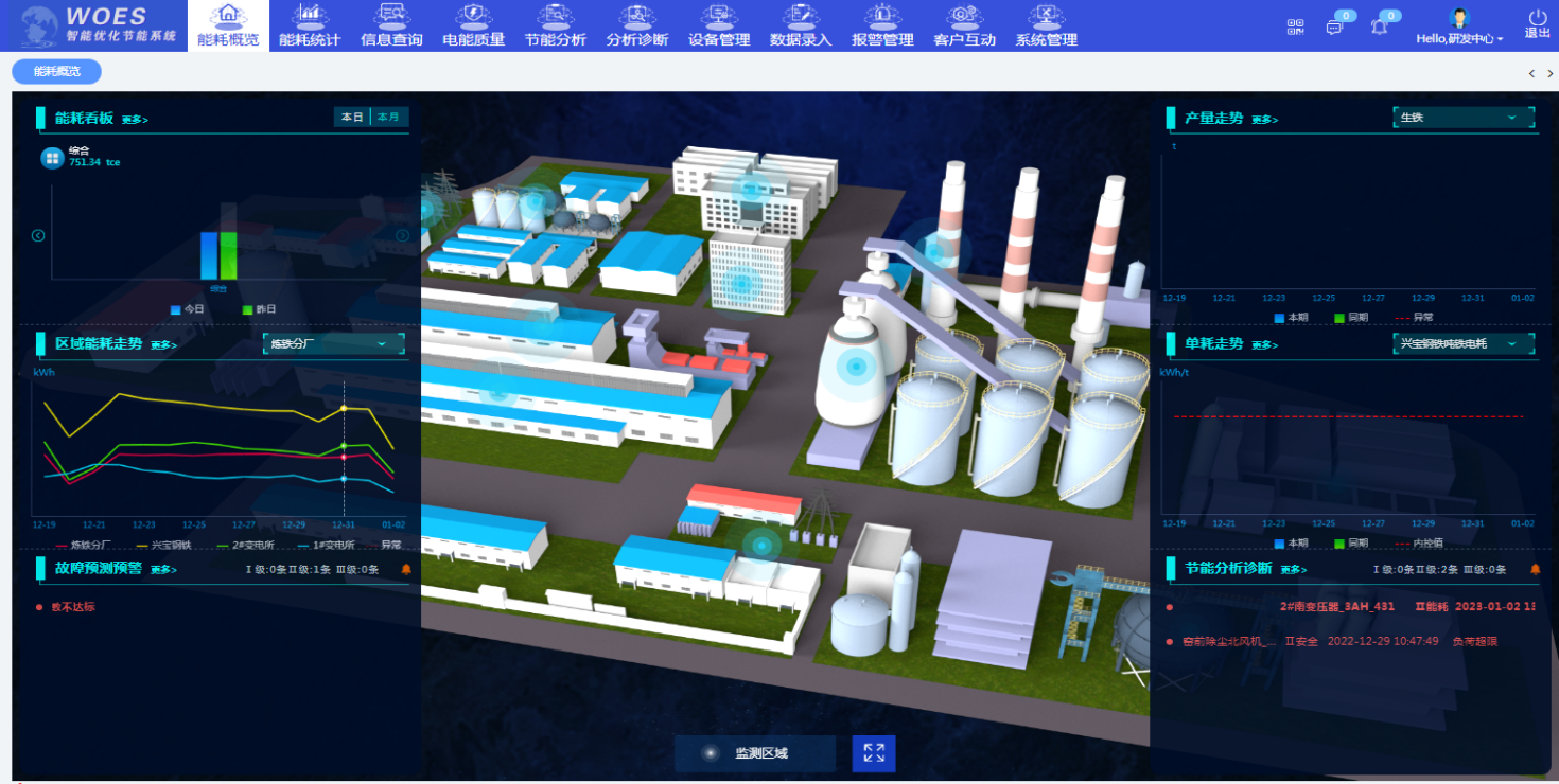 山西省某鋼鐵有限責(zé)任公司W(wǎng)OES智能優(yōu)化節(jié)能系統(tǒng)監(jiān)測能源種類為電力、水、蒸氣、煤氣,監(jiān)測點共計411個,其中電力監(jiān)測點338個、水系統(tǒng)監(jiān)測點44個、蒸汽和煤氣、氮?dú)狻⒀鯕獗O(jiān)測點52個。涵蓋煉鐵廠(石灰窯工段、噴煤工段、球團(tuán)工段、燒結(jié)工段、高爐煉鐵工段)、煉鋼廠、軋鋼廠、制氧廠、發(fā)電廠、煤氣柜。項目主要建設(shè)內(nèi)容如下: