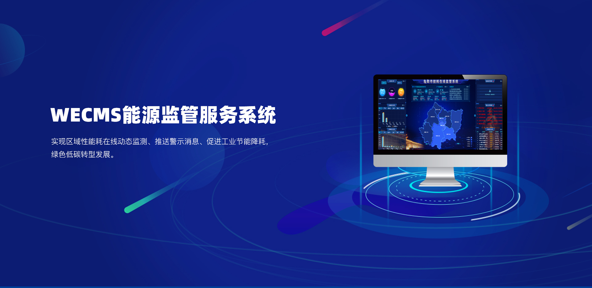 利用系統中的能耗數據結合系統功能,幫助職能部門及時了解全市的能耗使用情況,并及時發現某縣市區的能耗異常,通過系統后臺多維度的分析,結合區域和行業的標準,建立能耗報警和預警體系,為政府決策、行業監管、能耗預警分析提供數據支撐,為調整全市的用能做數據指導。