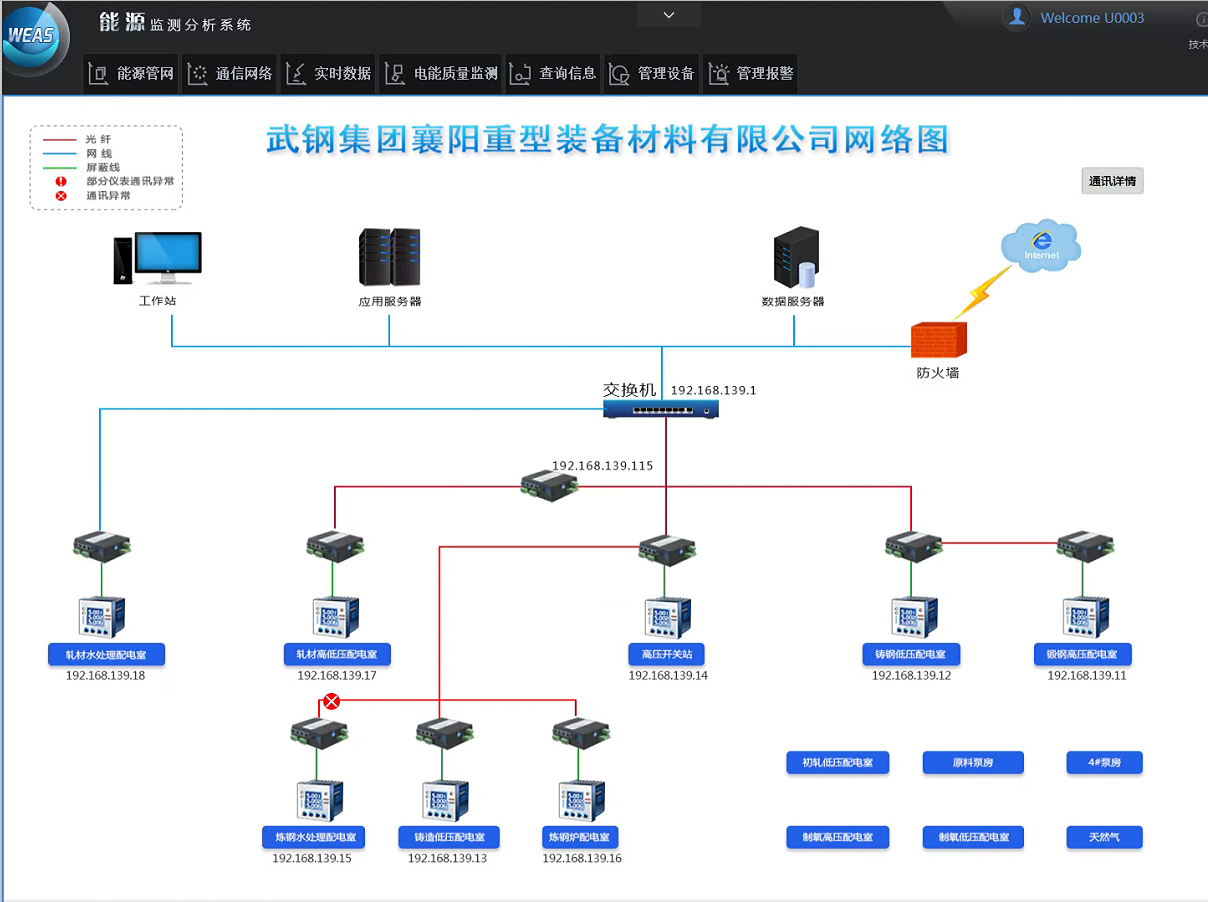 湖北某重型裝備材料有限公司W(wǎng)EAS能源監(jiān)測分析系統(tǒng)監(jiān)測能源種類為電力、水和天然氣,監(jiān)測點共計102個,其中電力監(jiān)測點86個、水系統(tǒng)監(jiān)測點7個、天然氣監(jiān)測點9個。涵蓋涵蓋煉鋼、鑄鋼、鍛鋼、軋材、制氧等區(qū)域。項目主要建設(shè)內(nèi)容如下: