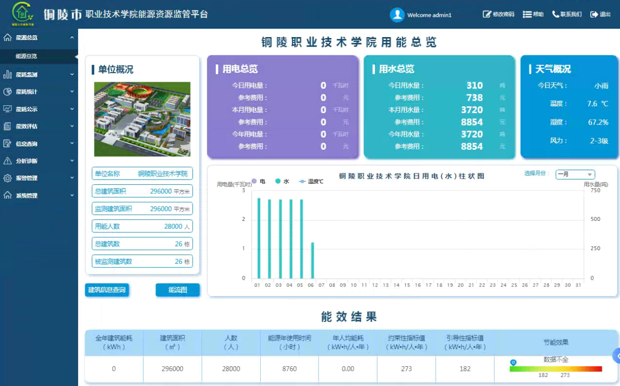 1、幫助學校實現(xiàn)能源績效考核。系統(tǒng)可以實現(xiàn)對不同樓層、班級、區(qū)域電耗的對比分析,查找負荷、產量、電耗變化的原因,幫助學校能源管理者采取措施降低消耗,促進各用能區(qū)域之間相互交流,提升人員的節(jié)能意識從而降低能耗。